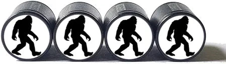 Bigfoot Sasquatch Silhouette Tire Valve Caps | White Background | Set of 4 | Aluminum | Universal Fitment | Easy Installation | United States