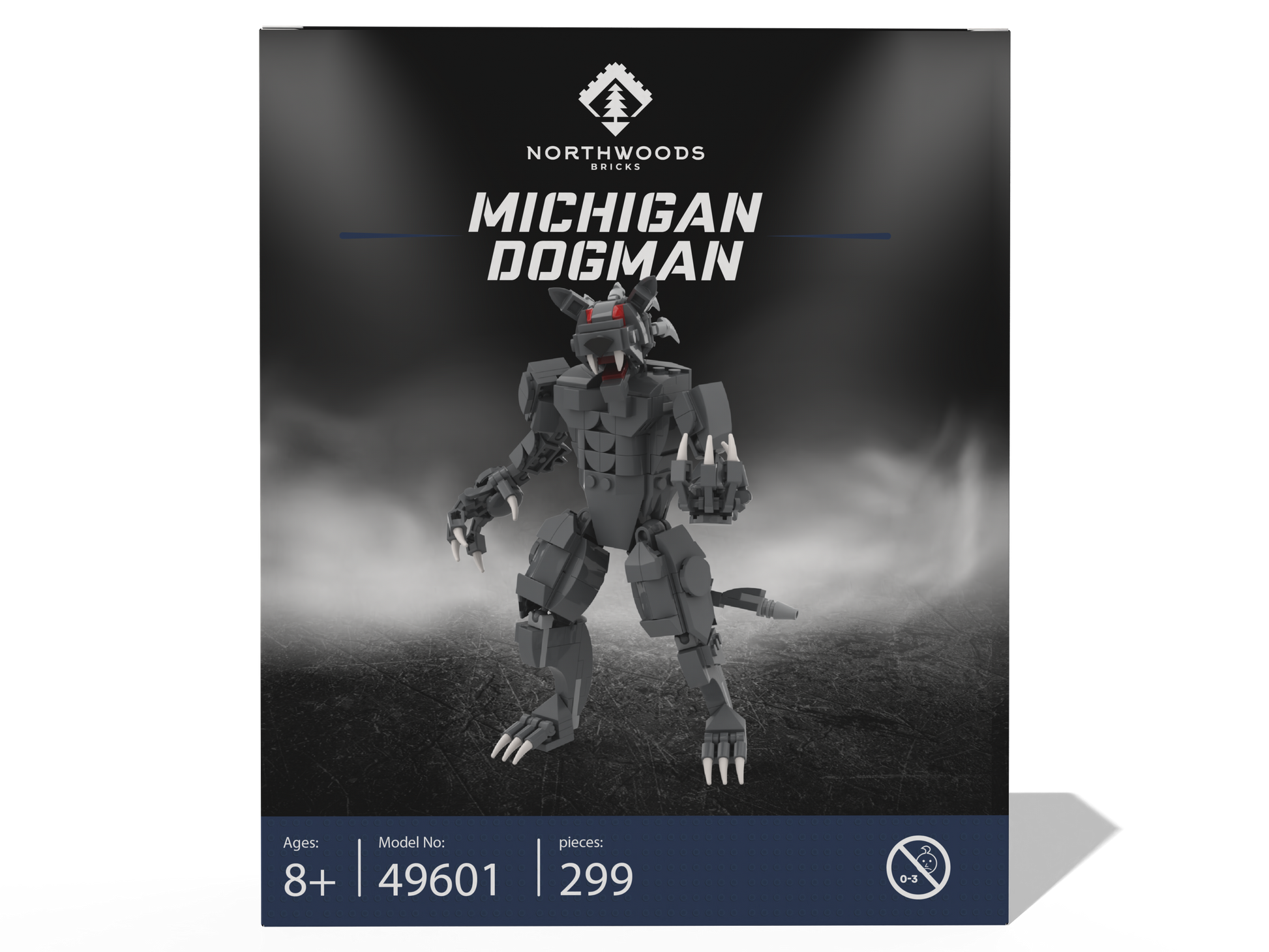 This 299-piece Michigan Dogman Brick Set brings the werewolf-like cryptid to life with glowing red eyes, clawed limbs, and upright pose. Inspired by legends from Michigan’s forests and rural roadsides, this boxed set includes printed instructions and is compatible with all major brick brands. Recommended for builders and cryptid fans ages 8 and up.